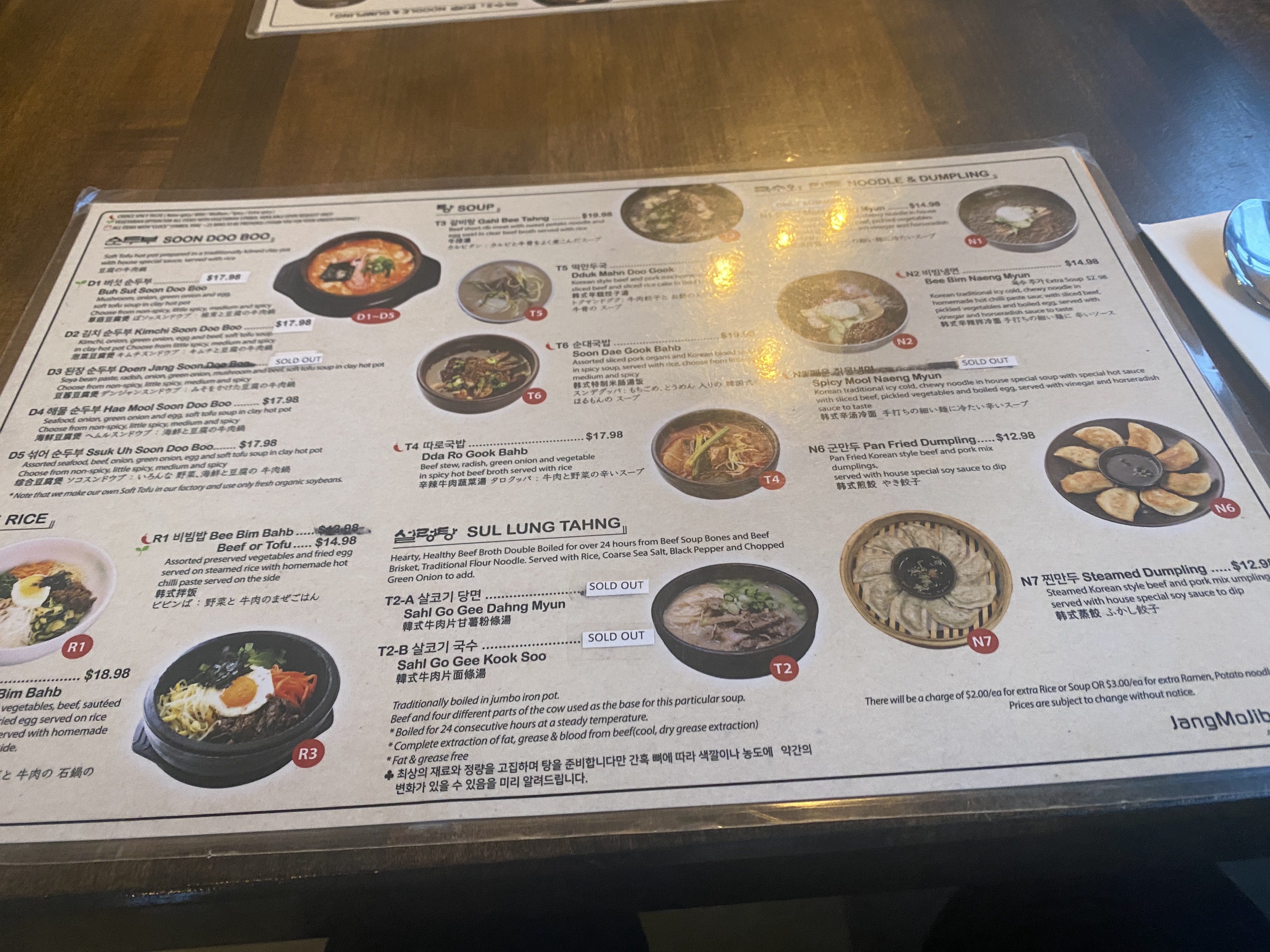 나고 맛있었고, 육개장과 갈비탕
